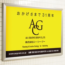 創業31周年を記念した地下鉄駅構内電飾看板。