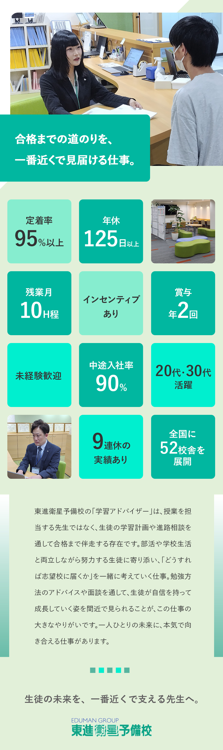 未経験から教育業界へ!年休125日・残業月10hで働きやすい★「東進衛星予備校」の学習アドバイザー