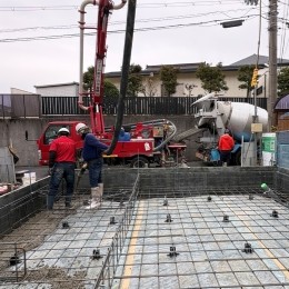 型枠にコンクリートを流し、固まれば基礎工事はほとんど完成。