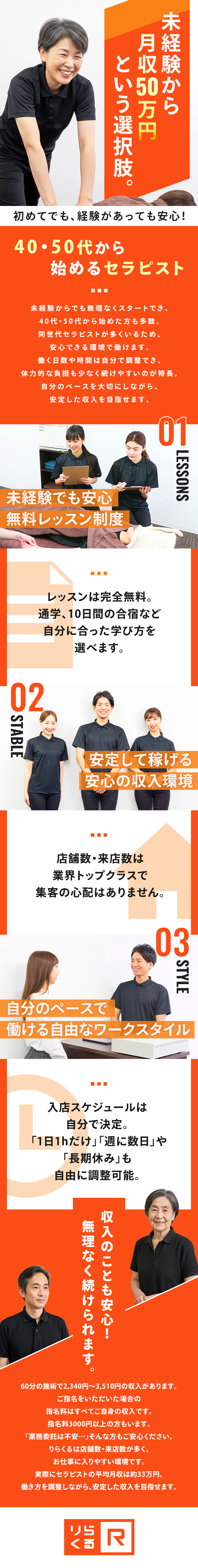 セラピスト/40~60代活躍中/働く時間・日数自由