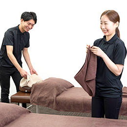 施術の手順はもちろん、体の仕組みや基本の姿勢、接客マナーまで一つひとつ丁寧に教えてもらえたので、セラピストは初めてですが安心でした。これからのセカンドキャリアとして、楽しく働けています。