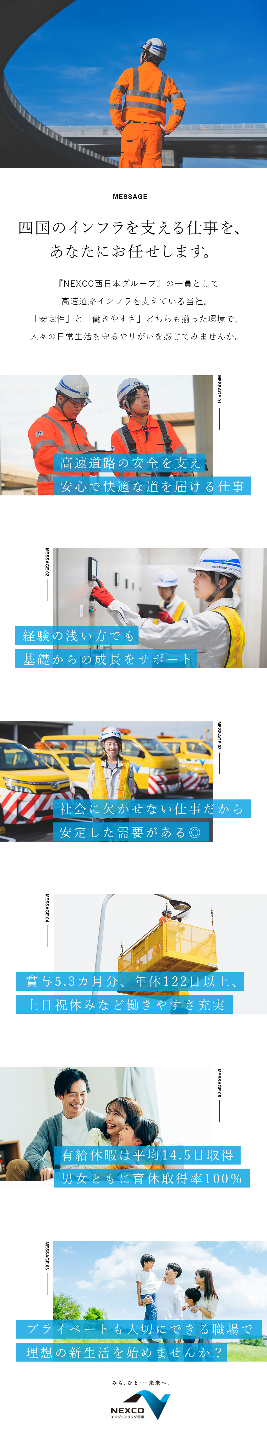 【香川/高松市】土木技術職(点検・設計・施工管理)◇NEXCO西日本グループ/年間休日122日