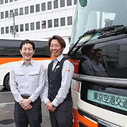当社のバスは空港送迎のリムジンバスの中でも特に歴史が長く、都内の一流ホテルの敷地に入ることも許されているほど。日本の空の玄関口である「空港インフラ」を支える一員としての誇りを感じられます。
