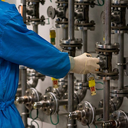 ディスプレイ材料の製造オペレーターとして、プラント運転や設備保守を担当します。