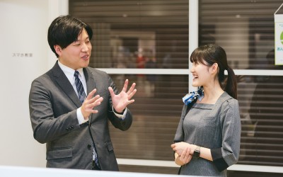 今回の取材では、実際に販売・案内スタッフとして活躍している先輩社員2名にお話を伺いました。