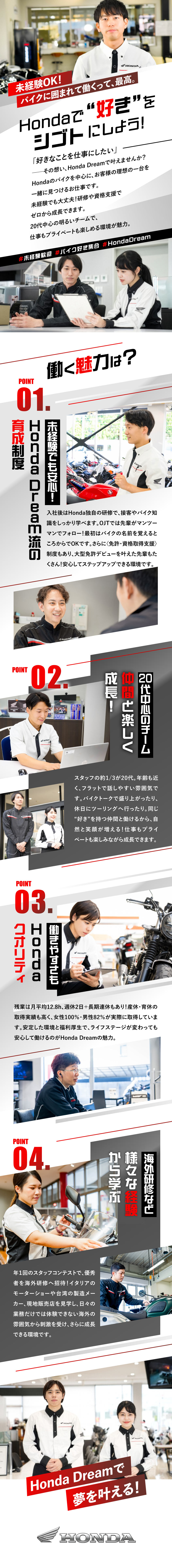 ホンダバイク専門店販売スタッフ/未経験大歓迎/賞与5ヶ月支給