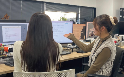 社内メンバーとの連携が中心で、残業も月2~3時間ほどと少なく、定時で帰る文化が根づいています。クライアントワークのような調整対応がなく、働きやすい♪