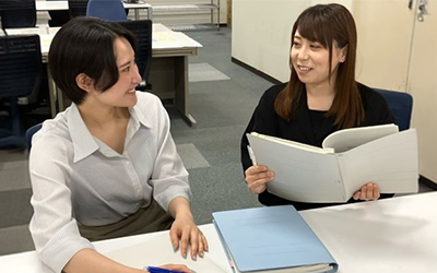 専用システムの操作や作業の進め方も、マニュアル&育成プログラムが整っているので未経験の方も安心♪すぐ隣に頼れる先輩がいるので、わからないことはその場で気軽に聞ける環境です。