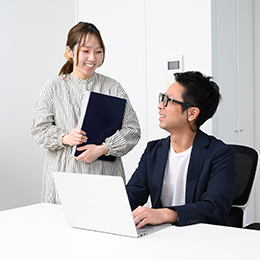 一人ひとりに合わせた育成体制がある一方で、受け身の姿勢では成長が難しい環境でもあります。オーダーメイドの研修や実務を通じて学ぶ機会が多い分、自ら考え、理解を深めていく姿勢が求められます。また、AIツールを活用する場面も多いため、新しい技術に対して抵抗なく取り組む柔軟さも必要です。主体的に学び続ける意識が重要になります。