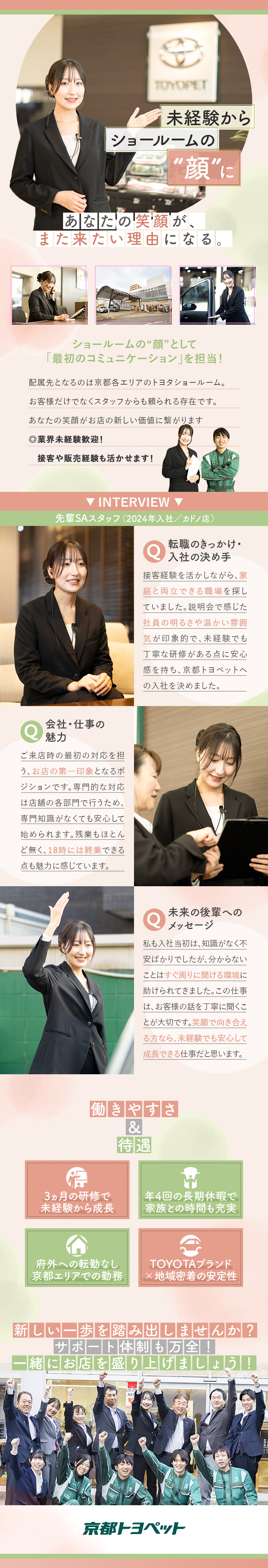 ≪会社≫京都エリアでトヨタ車ショールームを展開/≪仕事≫各店舗の受付・初期応対を担う重要ポジション/≪待遇≫月給23万円+賞与あり!/福利厚生充実!/京都トヨペット株式会社