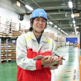 「体を動かすことや運転が好きなので、日々の荷役作業やフォークリフト作業は、自分に合った業務内容であると感じています。毎日多くの貨物が入庫されるため、新鮮な気持ちで業務に取り組んでいます」