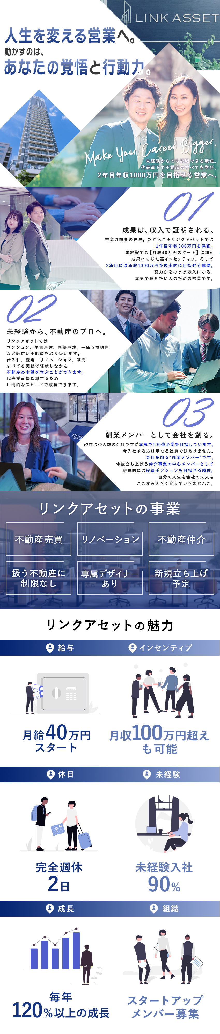 仕入営業/未経験/年収500万円保証/1期生/月給40万円~