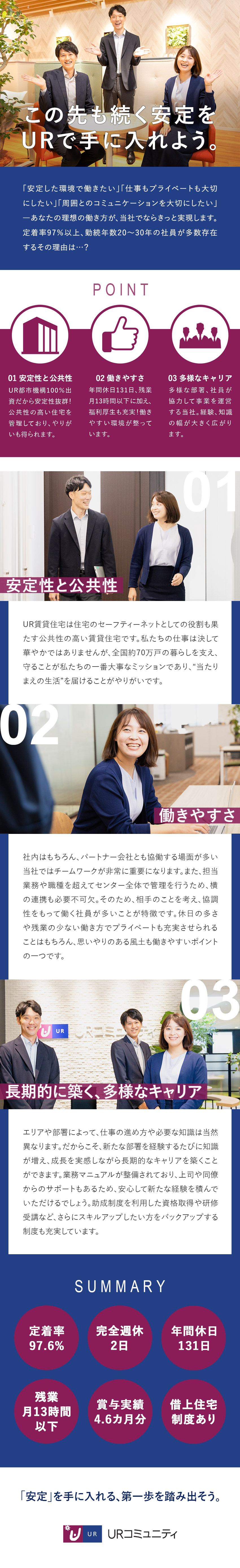 UR賃貸の住宅管理/年休123日/完全週休2日/残業月10h