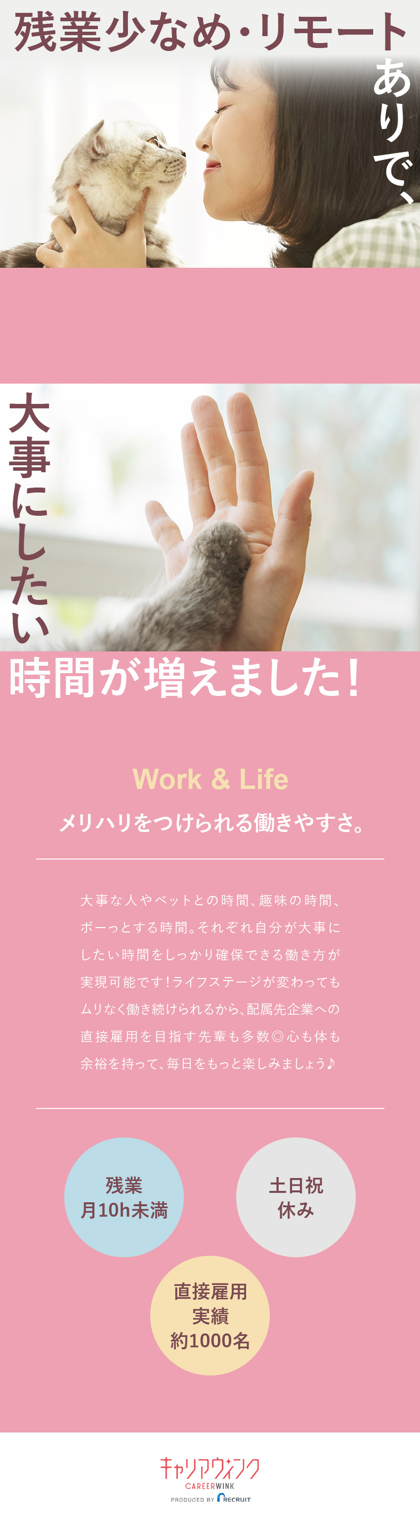 NEW事務職デビュー歓迎(ネイル服装自由/在宅あり/残業月10h)