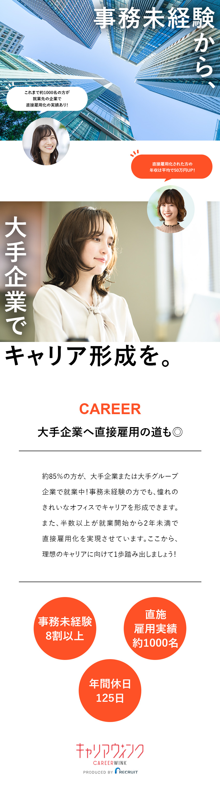 NEW人事アシ・事務/大手企業への直接雇用実績多数/残業月10h