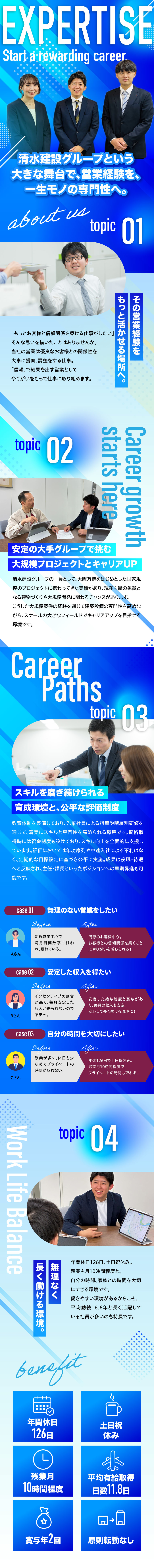 法人営業/上場企業G/年休126日/残業月10h/住宅手当有