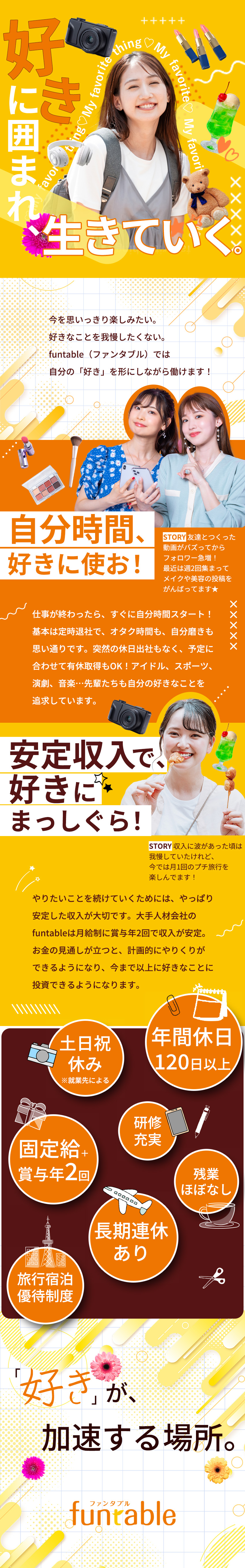 funtableの社員は、スポーツや演劇鑑賞、アイドルなど、思い思いに“好き”を楽しんでいます。