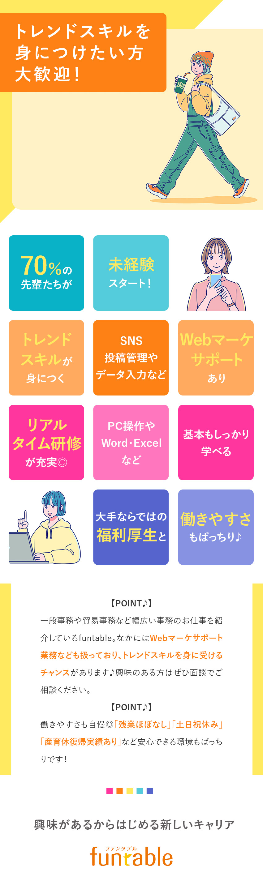 トレンドスキルが身につくWebマーケサポート事務/定時退社