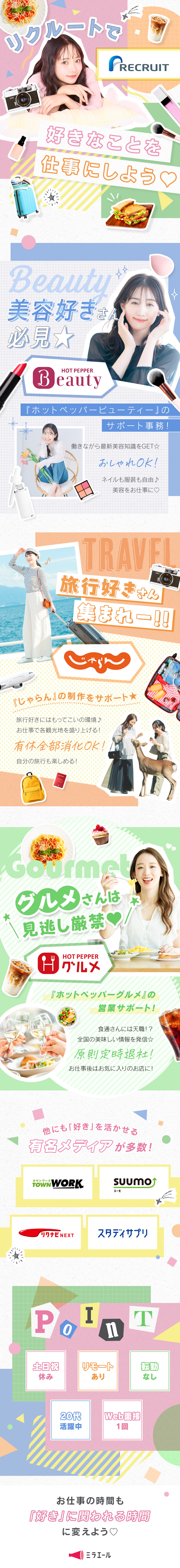 ※運営元のリクルートでの雇用ではなくスタッフサービス「ミラエール」制度での採用です。