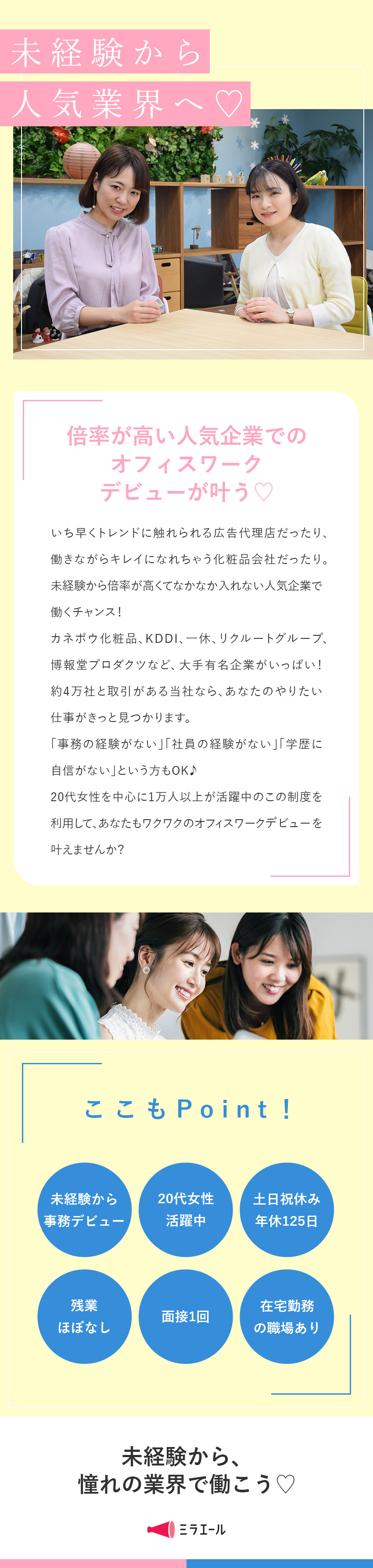 大手化粧品会社やマスコミで働く事務/服装・ネイル自由