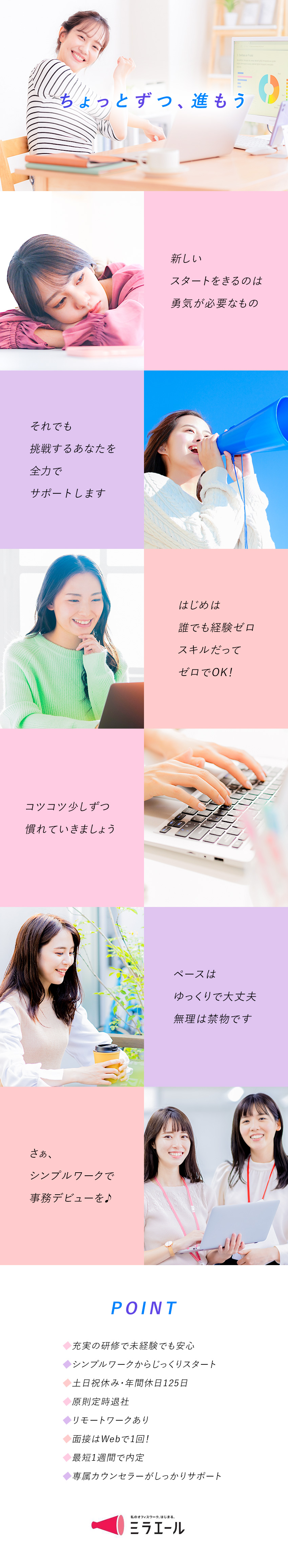 コツコツとした作業ができる方、ミラエールで事務デビューしてみませんか?