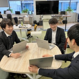 フリーアドレス制の導入や最新生成AIの活用など、業務の効率化や能率アップを重視した働き方を推進しています。残業は月平均10h以下とほとんどなく直行直帰も可能なため、仕事以外の時間も充実させられます。