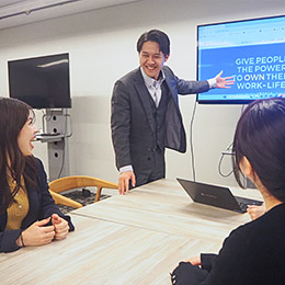 人材業界の知識や商材についてイチから教えますので、未経験の方もご安心ください。先輩の営業同行やフィードバックを経て、着実にスキルが身につきます。Teamsを使った社内コミュニケーションが活発で、困ったときにはすぐ相談できる風土があります。