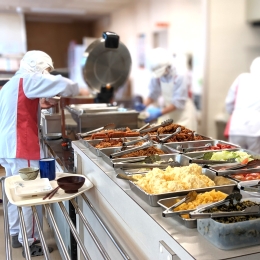 ◎1食264円の社食は、ご飯・おかず盛り放題