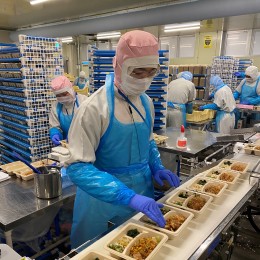 食材をトレーに並べてベルトコンベアに流していく簡単なライン作業です。