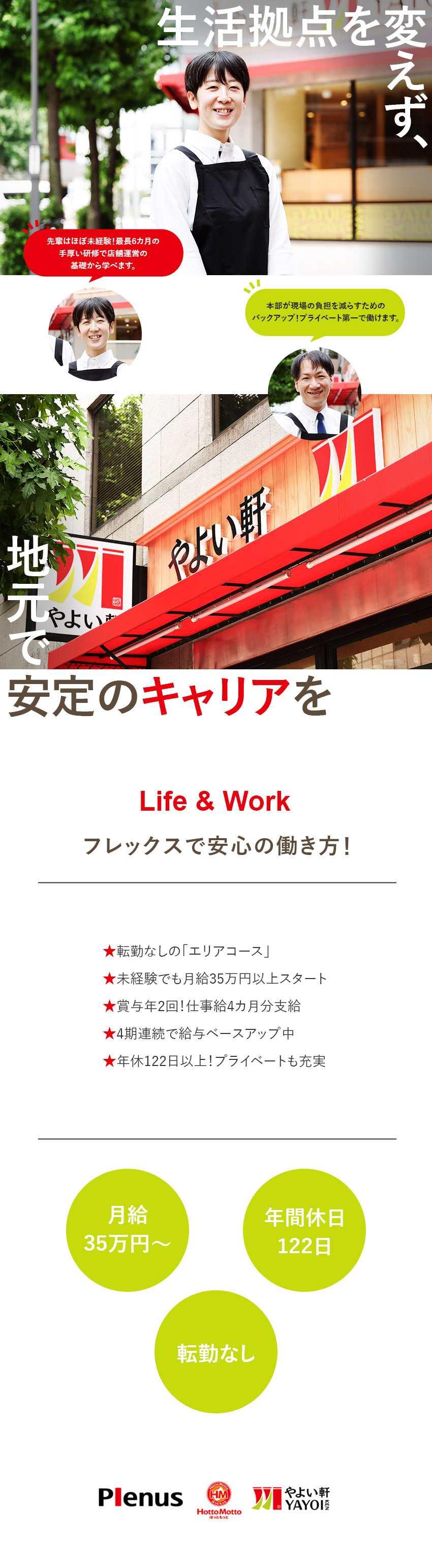 今回募集するのは、転勤なしの働き方ができる『エリアコース』。家族の介護や共働きによる子育て、その他さまざまな事情で転勤に対応できない方でも安定感を持って働けるのが特長です。