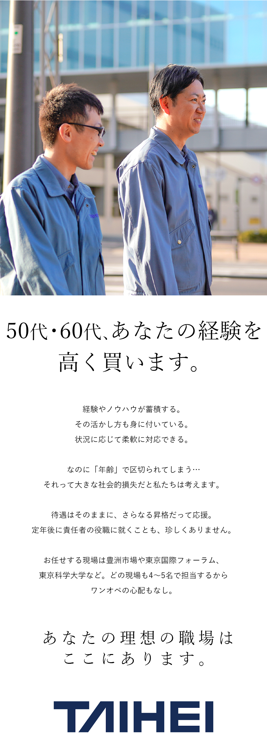 【平均年齢53歳】安定企業で長く、無理なく勤務可能/【定年後も昇格・昇給あり】年齢でキャリアを止めない/【年休120日】1日働き2日休み!チーム制で負担減/株式会社太平エンジニアリング