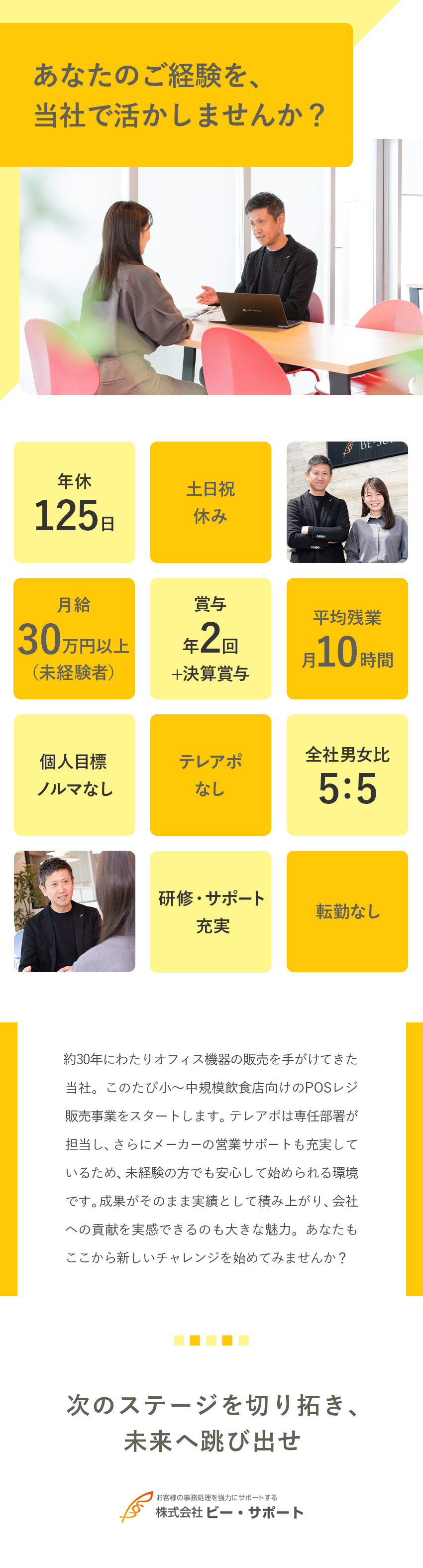 新設部署の営業職/未経験歓迎/土日祝休/年休125日/残業少