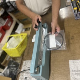 品出し担当が用意した商品をパッキング袋に入れる