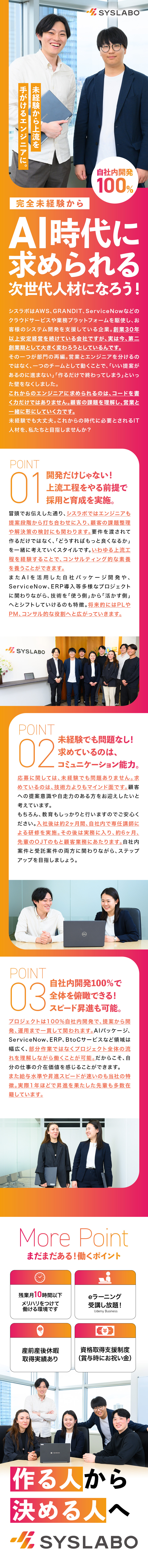 *上流やAI、クラウドなど将来性ある分野で活躍!/*自社内開発100%!2ヶ月間は研修に集中!/*残業月平均10h程度/年休125日/産育休あり/株式会社シスラボ