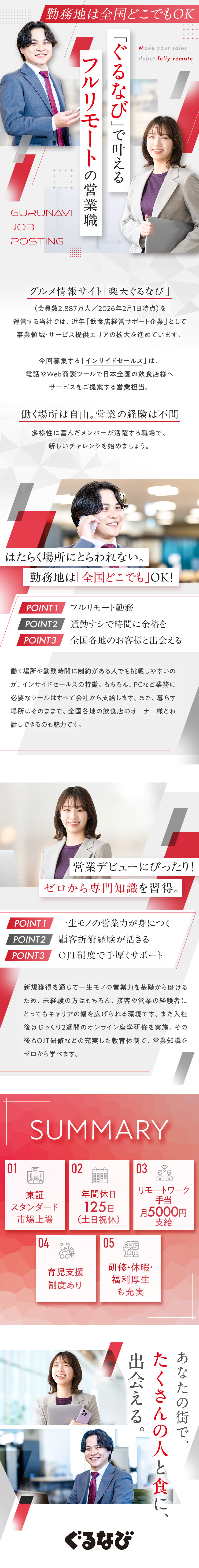 【未経験歓迎/全国フルリモート可】インサイドセールス~プライム上場/楽天ぐるなび運営/残業10h