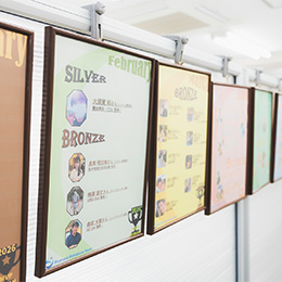 【社内表彰】オフィスには、表彰者と功績を紹介したパネルを展示。功績は部署問わずしっかり評価します!