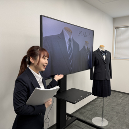 企画からプレゼンまで一貫して担えるからこそ、自分の手掛けた制服を着た方を街中で見かけた際には、大きな喜びとやりがいを感じられるそうです。自分のアイデアを形にする楽しさは、この仕事ならではの魅力です。