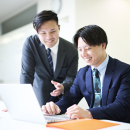 まずは座学研修で知識・会社について学習。特定の先輩が教育を担当する”ブラザー・シスター制度”を導入しているので、その後はマンツーマンで営業スキルをお教えしていきます。約2カ月ほどかけてじっくり学べます。