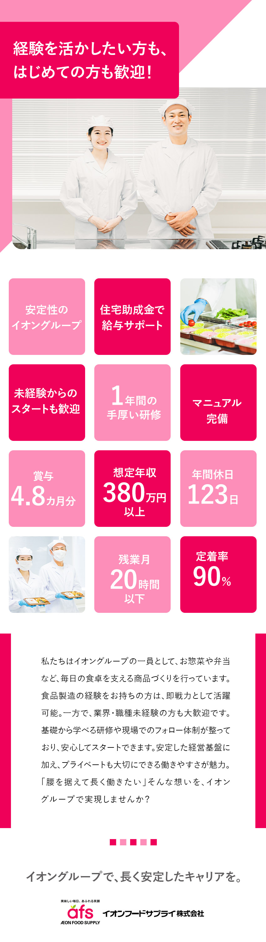 【20代活躍中!/年4回の長期休暇あり!】全国イオンのお店に並ぶ食品製造をお任せします♪