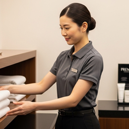 お客様の快適を支えるお仕事。タオル補充など簡単な作業からスタートするので、未経験からでも安心です!