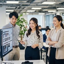 「デザインが好き」「ITに興味がある」その気持ちが原点。ここでは、未経験からでも安心して学べる充実の研修と、あなた専用の育成プランがあります。ツールの使い方から始まり、着実にステップアップできる環境が整っているのが魅力。さらに、同じ目標を持つ仲間と学び合えるから、挫折せず続けやすいのも特長で、努力した分は収入にも反映されます。「やってみたい」を「やってよかった」に変えられる仕事です。