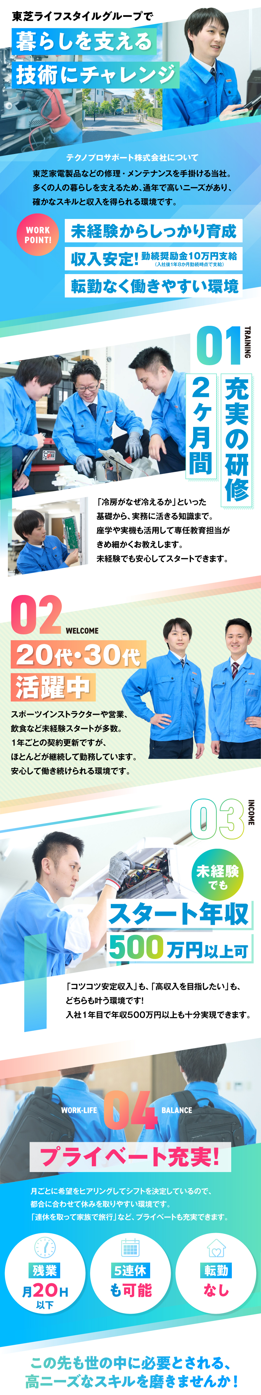 東芝家電の修理スタッフ/初年収500万円以上可/経験資格不問