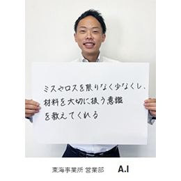 ミスやロスを限りなく少なくし、材料を大切に扱う意識を教えてくれる。東海事業所 営業部/A.I
