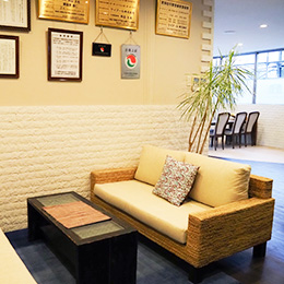 お客様をお迎えする店内は、落ち着いたリゾート風の空間。ゆったりとした雰囲気が広がっています。