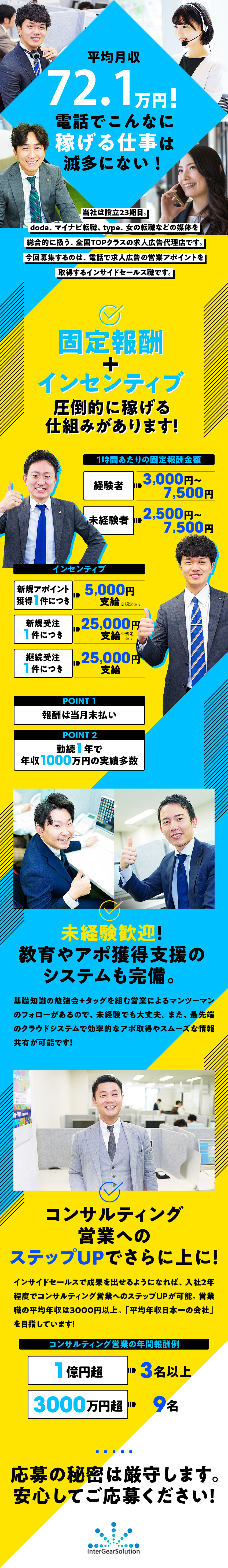 求人広告の電話での営業アポ取得/平均月収72万円/平日のみ