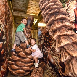 巨大などんぐりの木のてっぺんを目指す、新感覚の木登り型アスレチック。
