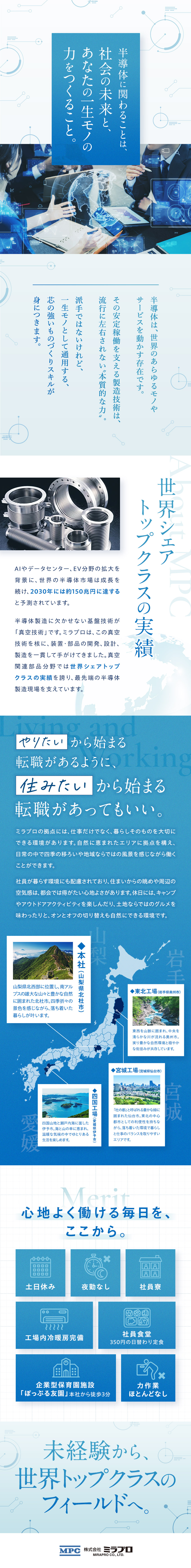 ・ミラプロ本社:山梨県北杜市須玉町穴平 1100番地(製造/品質保証)