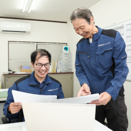 長年取引しているお客さまが多く、取引先の6~7割が官公庁やインフラ系のため業績は安定しています。私もみんなと一緒にメンテナンスの仕事をしているので、働く環境はもっと良くしていきたいと思っています!