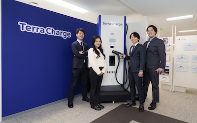 EV充電器「Terra Charge(テラチャージ)」により、電気自動車(EV)の動力源<エネルギー>となる電力を供給。自社開発のアプリによりエンドユーザーから課金(料金を回収)するビジネスモデルで急成長を遂げています。- 所在地