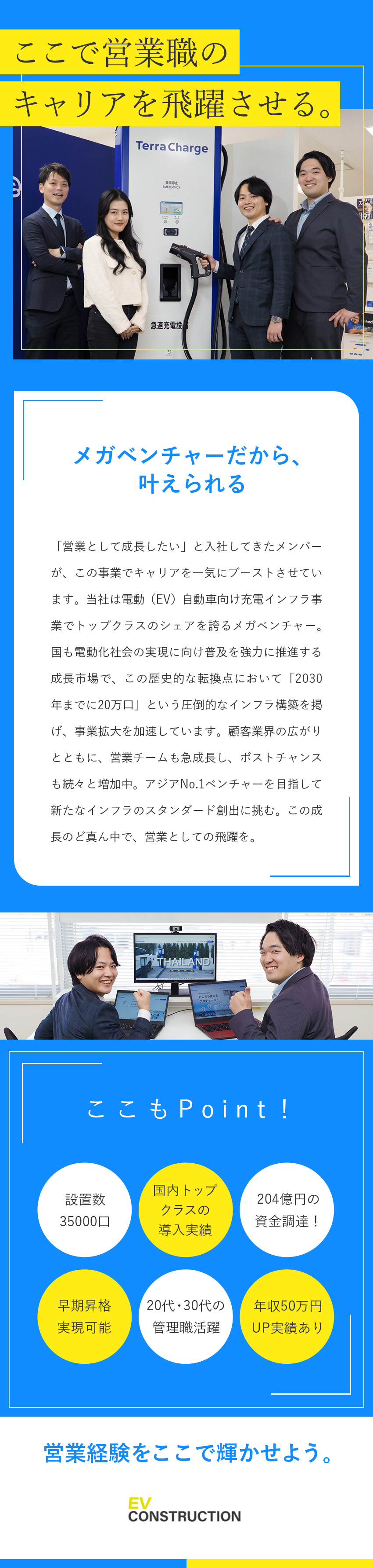 EV充電インフラの提案営業/早期昇格可能/年休124日